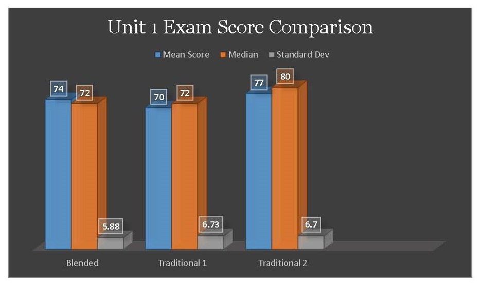 Lastly, in future units, test corrections will be organized differently in the blended classroom. In the past, I have allowed one day for students to complete their test corrections in class. If they had additional corrections to complete, they had to complete them in the testing center. Going forward, the blended section will have two days of flex time for corrections and the students will attend based on their individual need. My hope is that this will allow me more time to offer individualized supports to the students who most need them. I will be using their cumulative exam scores as a means of comparison to measure the impact of this change.
