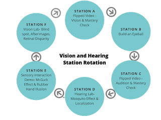 Something new that I added to this unit – and the only thing that I created from scratch – was the station rotation. I chose to redesign this lesson because in prior years my students have struggled mastering the anatomy of the eye and ear. Turning this into a station rotation allowed me to flip these lessons. The students could then go back and access the material any time that they needed to. In addition, I added a teacher-led station into the rotation because I wanted to build in time to meet all of the students one-on-one, not just the ones in the physical classroom.